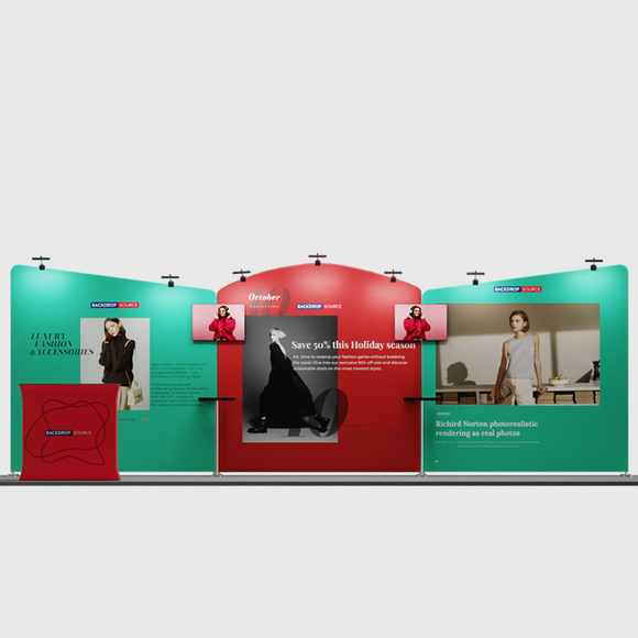 - • Customizable modular design for flexible configurations to fit a 20 x 10 booth space