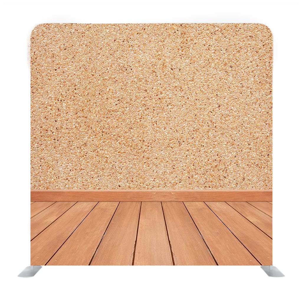 Parete strutturata in sabbia con parete multimediale con pavimento in legno