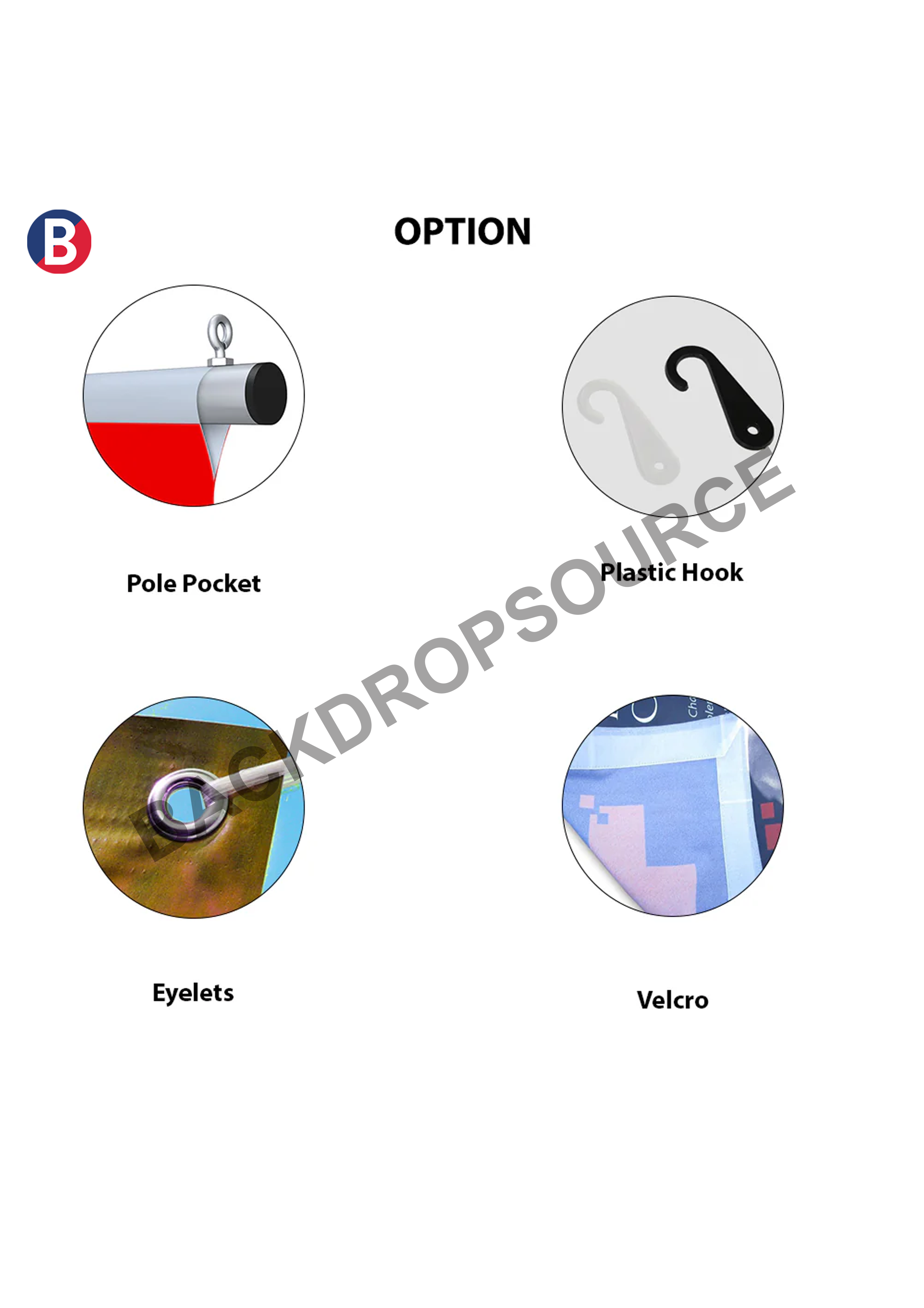 Possiamo rifinirli con tasche per aste o pali in modo che tu possa lasciarli cadere dal soffitto per il tuo prossimo evento. E possiamo averli con occhielli per appenderli all'interno e all'esterno. Se lo usi come fondale, possiamo semplicemente orlarne i bordi in modo che tu possa allungarli e appuntarli sui supporti che forniamo [supporto regolabile da 8 piedi, supporto per treppiede da 8 piedi e supporto per fondale]. E regaliamo velcro e alette antivento solo per garantire che la tua fotografia non catturi una piega. In questo modo, puoi avere le estremità fissate.